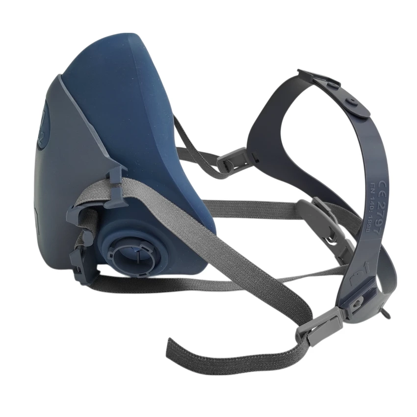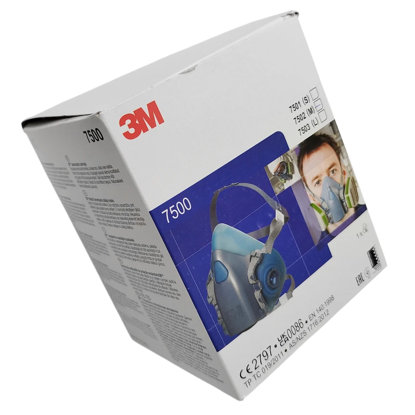 PÓŁMASKA 3M™ 7502 - R.M. Półmaska oddechowa wielokrotnego użytku. Główne cechy: Zaawansowany materiał silikonowy zapewnia miękkie, wygodne odczucie na twarzy oraz zawór 3M™ Cool Flow™, ułatwiający oddychanie/ Podwójny filtr bagnetowy - zapewnia równomierny rozkład ciężaru i minimalne zakłócenie pola widzenia/ Zawór Cool Flow™ ułatwia oddychanie i redukuje nagromadzenie ciepła i wilgoci wewnątrz maski/ Miękka powierzchnia uszczelniająca (zaawansowany silikon) i niskie opory oddychania zapewniają długotrwałą wygodę użytkowania/ Unikalna taśma nagłowia z opcjonalnym opuszczanym paskiem - zapewnia stabilność i łatwość użytkowania/ Linia 7500 ma specjalnie zaprojektowaną gamę części zamiennych i akcesoriów, które pomagają utrzymać odpowiedni poziom komfortu i ochrony w przypadku zużycia lub uszkodzenia części. Kompatybilność: półmaskę można stosować w połączeniu ze wszystkimi filtrami 3M™ linii 2000, 5000 i 6000 (z wyjątkiem 3M™ 6098 lub 6099), można stosować z aparatami oddechowymi z doprowadzaniem powietrza 3M™ dla zwiększenia wygody i elastyczności. Typ maski: półmaska serii 7500. Typ połączenia: złącze bagnetowe. Typ uprzęży: 4 punktowa. Kolor: szaro-niebieski. Waga: 135g. Rozmiar: 7502 (M) - średni. Materiał: uszczelnienie twarzy, zawór wdechowy i zawór wydechowy - silikon, paski - poliester/poliuretan. Konstrukcja: półmaska wielokrotnego użytku, podwójny filtr typu bagnetowego - pasuje do szerokiej gamy lekkich filtrów 3M, zawór 3M™ Cool Flow™ - ogranicza gromadzenie się ciepła i zapewnia ujście wydychanego powietrza, miękka powierzchnia uszczelniająca, unikalna 4 punktowa taśma nagłowia - zapewnia stabilne dopasowanie i komfort użytkowania. Zastosowanie: obróbka drewna, obróbka metalu, produkcja, produkcja napojów i żywności, budownictwo. Polecane branże: budownictwo, projektowanie i wykonawstwo, instalacja sanitarna, przetwórstwo spożywcze, bezpieczeństwo żywności i mikrobiologia, ciężka infrastruktura, konserwacja instalacji przemysłowych, produkcja, przemysł stoczniowy, produkcja i obróbka metalu, konserwacja, naprawa i eksploatacja sprzętu wojskowego, górnictwo, przemysł paliwowo - gazowy, farmacja, transport.