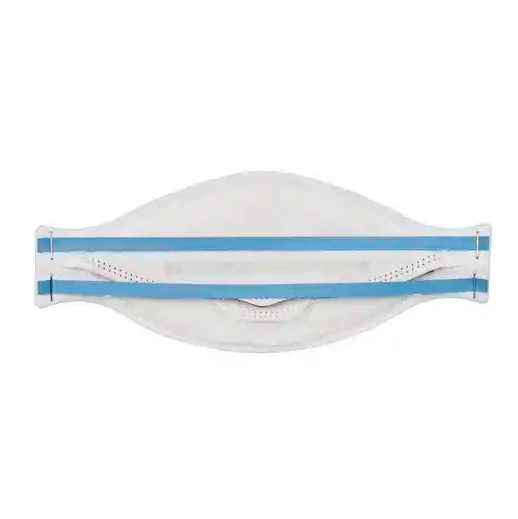 - Taśma nagłowia utrzymuje szczelne przyleganie półmaski do twarzy, kolor taśmy określa klasę ochrony – niebieski: FFP2 zgodnie z normą EN 149:2001+A1:2009,